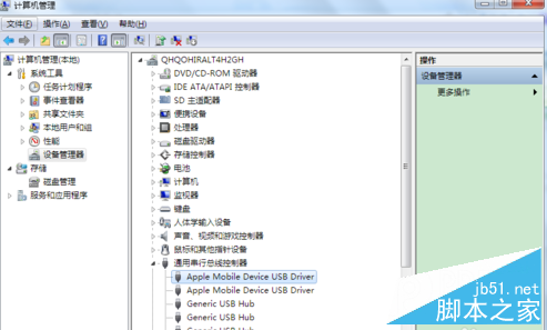 1、右击【计算机】,选择【管理】-【设备管理器】-【通用串行总线控制器】,看看是否有【apple mobile device usb driver】;
