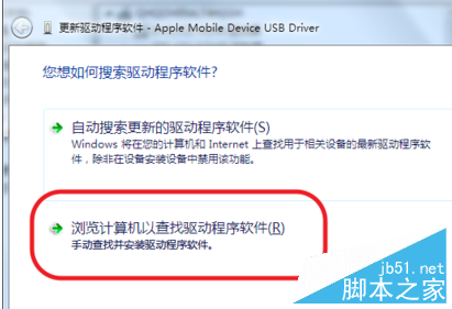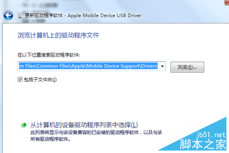 3、选择手动查找,依次进入【c:\program files\common files\apple\mobile device support\drivers】,然后点击下一步,进行驱动程序的安装
