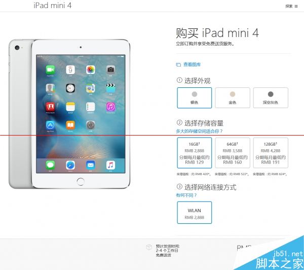 从苹果官网给出的信息来看,ipad mini 4有银色、金色和深空灰三种颜色,容量还是16gb、64gb、128gb,对应的wlan版本售价分别为2888元、3588元、4288元,与ipad mini 3保持一致,4g蜂窝数据版暂未上架。预计发货时间为2-4个工作日。