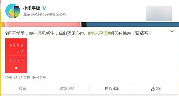 配图中出现了“小米平板×2=????”的字样,如图所示:
