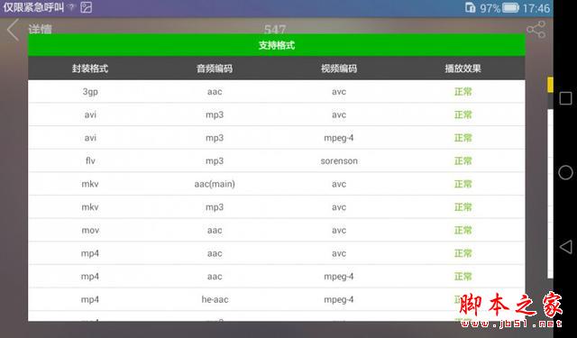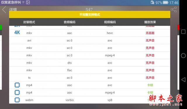 安兔兔-视频测试通过测试可以看到这款平板的视频支持能力还是非常强大的,通过图可以知道绝大部分高清视频都能完美支持