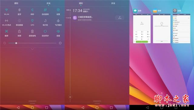 ◆下拉通知栏以时间线的形式对各种通知内容进行展示,另外毛玻璃特效增加了美观度