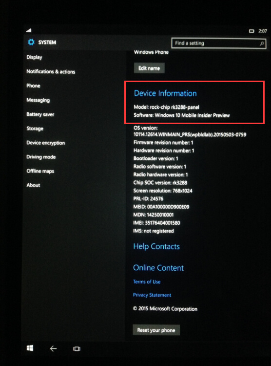 在台北computex电子展期间,疑似arm架构windows10平板照片曝光,这是目前全球首款曝光的在非x86架构运行windows10系统的终端平板产品。从曝光的图片来看,系统显示software为windows 10 mobile insider previe,证实其windows10身份无疑。chip soc version:rk3288,来自瑞芯微的芯片,该处理器采用arm cortex-a17,最高频道1.8ghz;gpu采用arm mali t760系列的t764。