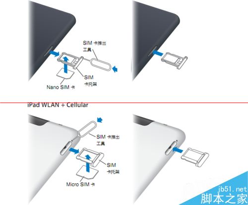 6、sim 卡托架,ipad wlan + cellular 机型中的 sim 卡用于蜂窝移动数据。如果您的 sim 卡未预装或者您要更换蜂窝移动数据运营商,您可能需要安装或更换 sim 卡。
