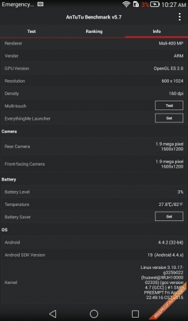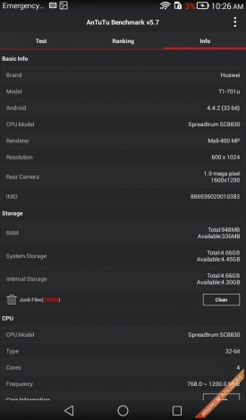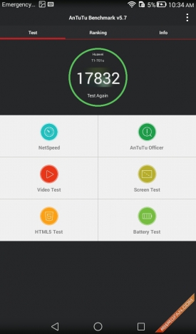 硬件配置方面,荣耀畅玩平板采用了arm架构的cortex-a7四核处理芯片,主频为1.2ghz,同时搭配1gb ram以及8gb rom,从参数上来看,虽然配置没有达到主流标准,但满足日常应用问题应该不大,为了印证我们的猜测,我们也通过实际跑分来测试了一下这款产品。