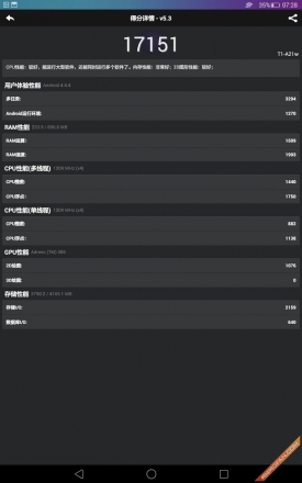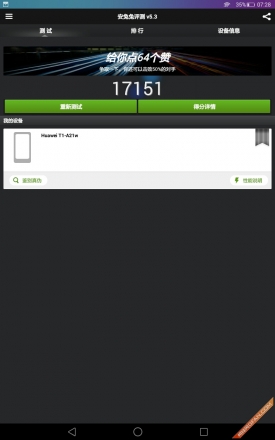 硬件方面,荣耀畅玩平板note搭载了高通骁龙410四核64位处理器,1gb+16gb组合,从配置上来看,已经达到了目前千元级主流标准,那么在性能方面又表现如何?下面我们就采用三款软件对其进行测试。