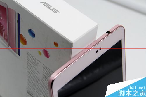 机身正面上方是感应器和前置摄像头,下方是华硕logo。屏幕边框较宽,在跌落时可以很好地保护屏幕。