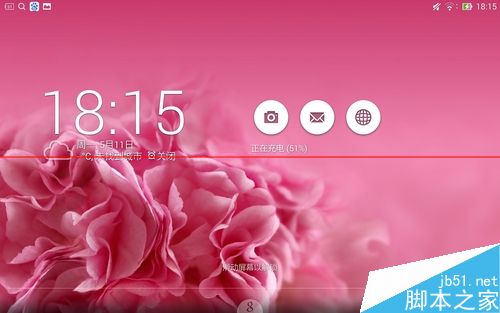 点亮屏幕后锁屏界面会显示日期时间、天气和网络状况,同时有相机、信息和浏览器三个快捷键,按住快捷键向任意方向滑动都可以快速打开相应的应用。