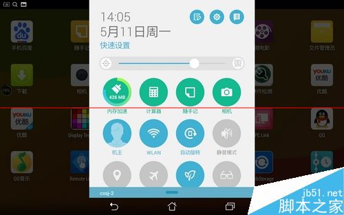 从顶部下滑,可以呼出通知栏,但通常情况下是仅显示通知,点击右上角的图标,才能调出快捷按钮,这里不多赘述。
