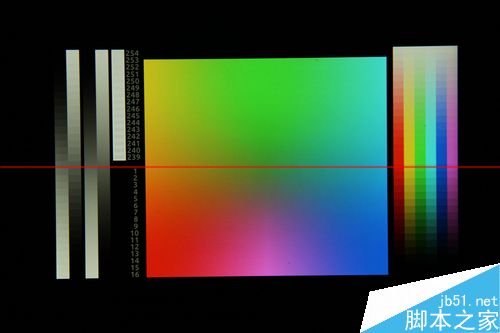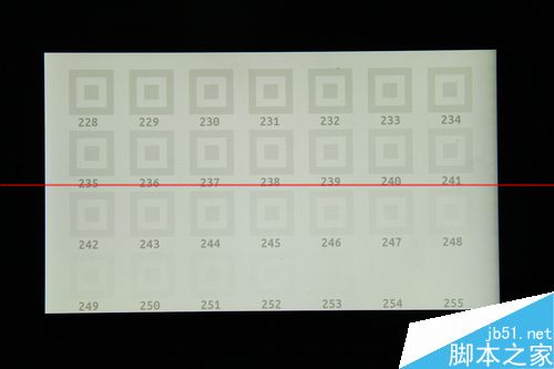 黑白阶显示方面,黑阶可以达到4,白阶显示可以达到253,属于正常水平。