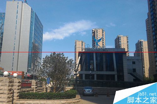 顺光条件下,建筑物和树枝主题清晰,但是锐化较严重。色彩还原较真实,接近人眼的观感。