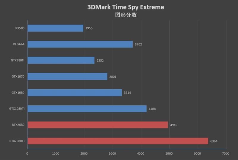 在3dmark time spy 测试中rtx 2080跑分比gtx 1080 ti高了761分,领先幅度为18%,相比gtx 1080的3314分则提升了50%之多。