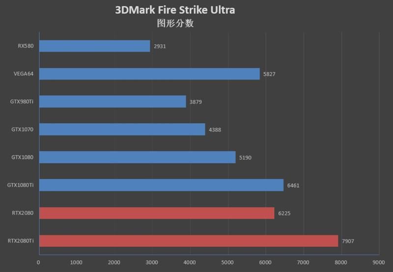 rtx 2080 ti在此项测试中的得分为7907,领先gtx 1080 ti 1446分。