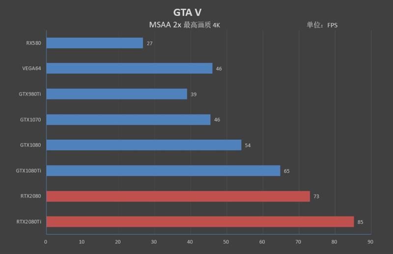 rtx 2080 ti帧率为85fps,领先gtx 1080 ti 20帧。