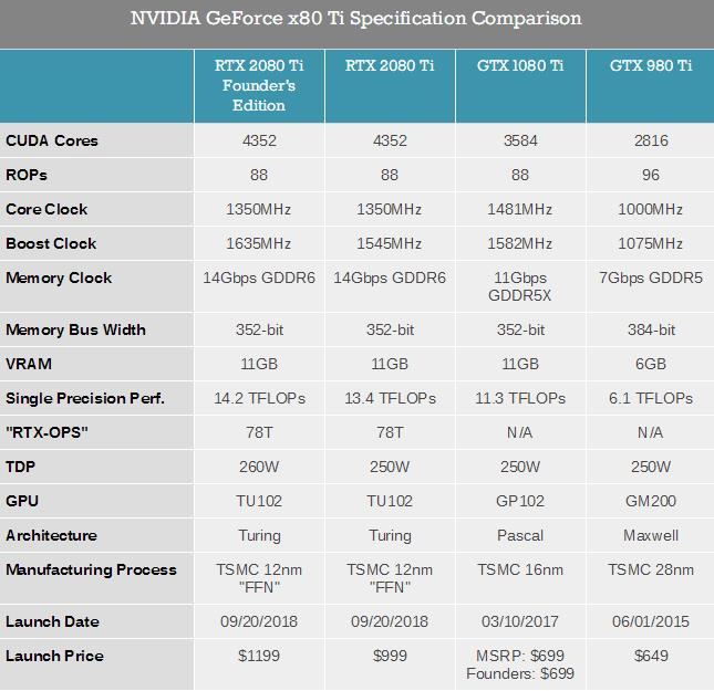 不过,rtx 2080 ti并未完全使用整个tu102核心,而是有所精简,仅提供4352个cuda核心(68组sm阵列),rt核心则减少为68个,tensor核心544个。
