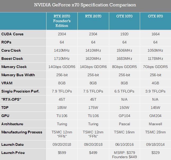 rtx 2070终于用了完整的tu106核心,核心频率基础1410mhz,加速公版1710mhz、非公版1620mhz,继续搭配8gb 14ghz gddr6显存,功耗185w。