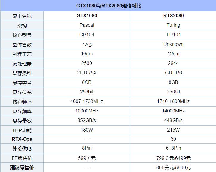 由于新显卡尚未解禁,所以暂时无法得到具体的性能测试数据,我们暂时只能通过参数规格来简单对比以下。下面制作了一张详细的gtx1080与rtx2080参数对比,区别如下:
