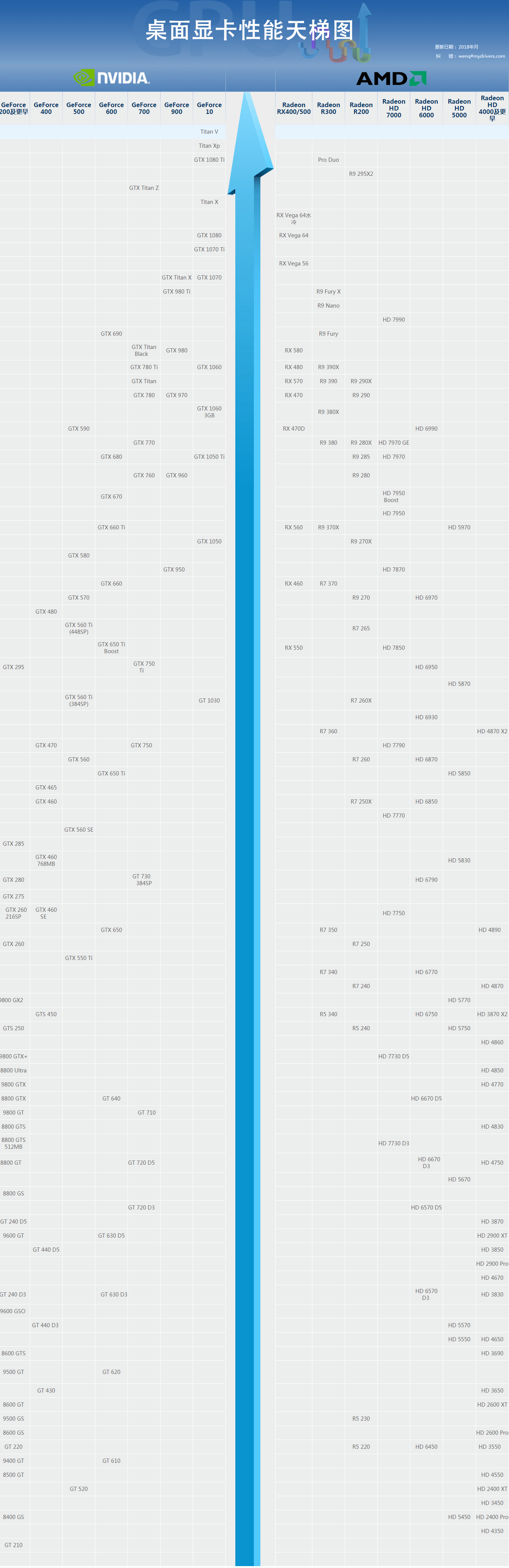 显卡天梯图2018年8月版更新就介绍到这里,如果想要了解一些老显卡天梯图性能排名的朋友,可以参考下面的2018年显卡天梯图完整版,如下所示。