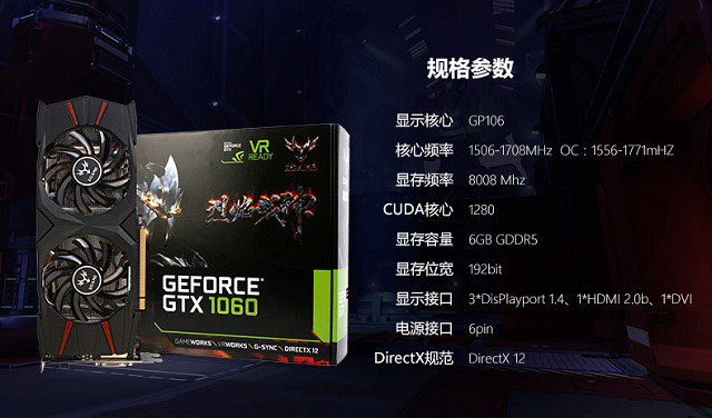 七彩虹gtx1060 6g游戏显卡 igame 烈焰战神u 6gd5 超频版