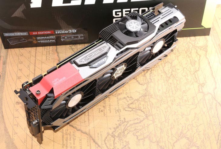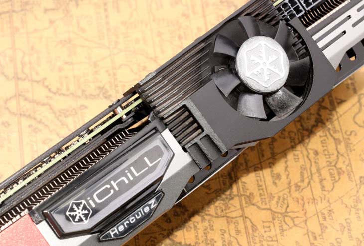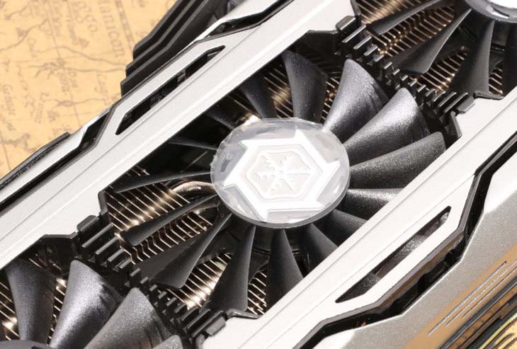 映众(inno3d)gtx 1080冰龙超级版采用的是第五代全新herculez x4 air boss散热器,其延续了上一代散热器的供电模块散热系统,巨大的散热片紧贴显卡的供电部分,通过两根复合热管(上一代为一根热管),导向显卡顶端,通过设置在显卡顶上的第四个风扇将热量散出。