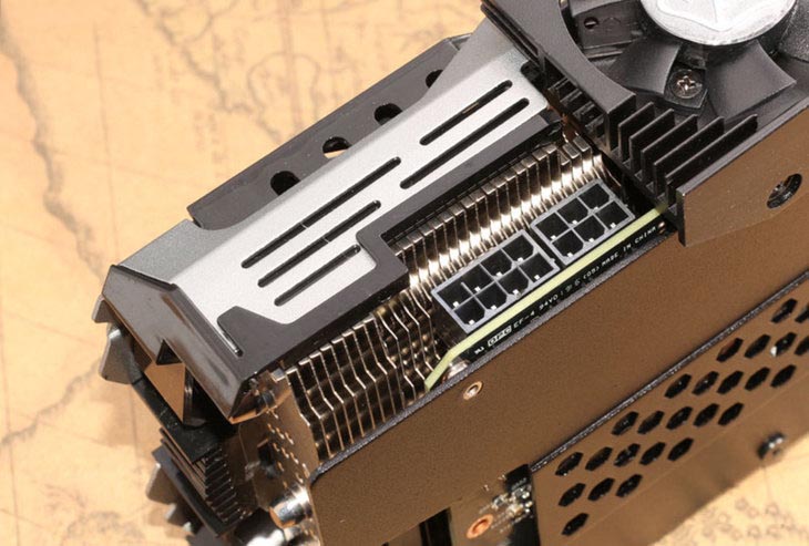 供电方面,显卡采用的是在pg413公版方案上增加为6+1相供电(公版为5+1相),同时外接供电升级为8+6pin的组合,全数字供电,这样一来可以为显卡超频提供更多的潜力。