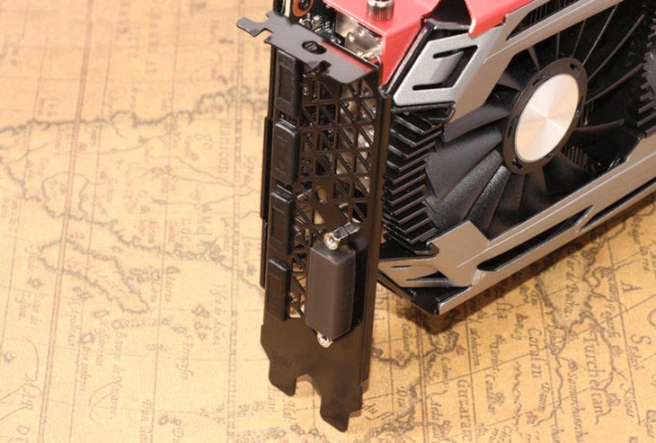 接口部分,映众(inno3d)gtx 1080冰龙超级版配备的是与fe版相同的1个 dvi-d、1个hdmi、3个displayport的组合,支持7680x4320的超大分辨率。