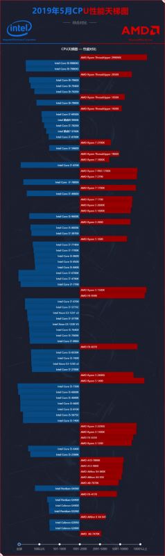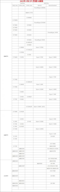 cpu一直是电脑硬件爱好者们关注的重点,一款cpu的性能如何直接决定了那个产品的定位和服务人群,天梯图2019年5月最新版集合了19年前所有的cpu处理器,进行同等对比来列举了这份详细的2019年cpu性能排行天梯图供大家浏览。