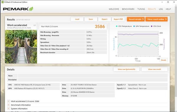 在pcmark 8 work的测试中,a6-7480总分为3586,与目前主流的i5办公电脑之间并没有太大的差距。