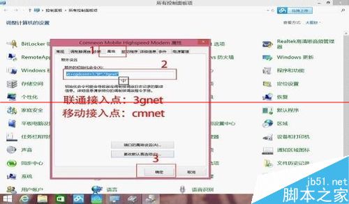 2、设置接入点【联通接入点名称:3gnet      移动接入点名称:cmnet】1.打开控制面板