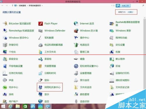 四、设置拨号打开控制面板;选择“网络与共享中心”