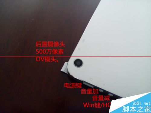 第一步:后置摄像头,500万像素,ov镜头。独立按键。依次为电源键、音量加、音量键、win键(安卓系统下相当于home键)、tf卡插槽