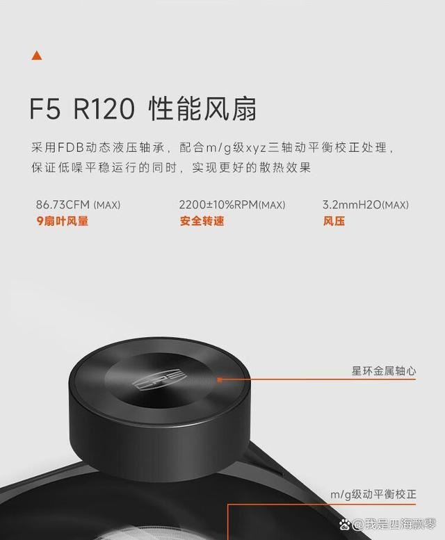 超频三臻系列f5 r120高性能风扇采用fdb动态液压轴承,配合m/g级动平衡矫正处理,具有较佳的性能和静音表现。
