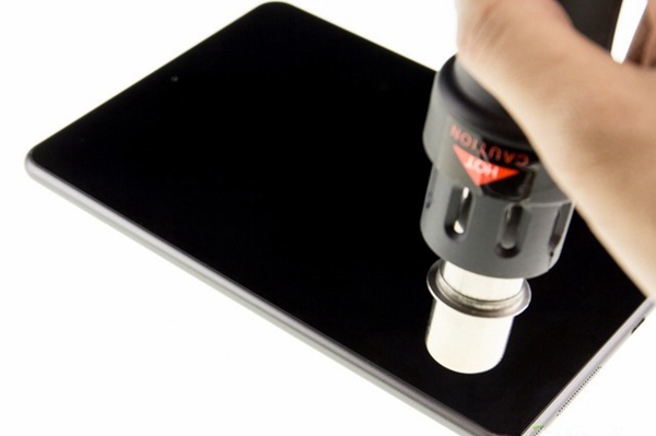 我们先用热风枪加热屏幕长边中间的位置,因为这里是最容易打开的部位。