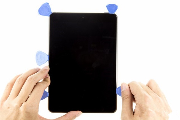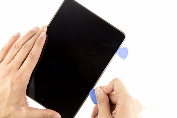 上一环节,我们利用热风枪加热屏幕,并成功制造出了一条屏幕与机身之间的缝隙,而接下来,我们需要利用翘片将这条缝隙扩大。