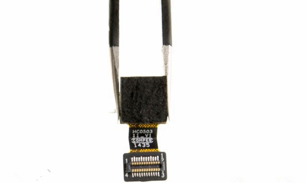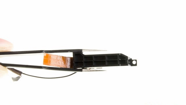 当插入第五个翘片之后,大部分屏幕边框已经脱离双面胶的束缚,但由于屏幕的屏线还与主板连接,所以我们只有断开屏线插槽才可以大胆将屏幕与机身分离。