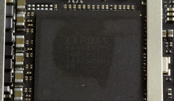用于固定主板的拉胶共设计了五处,当我们一一将其取出,主板遍很轻松的拿出来了。接下来拍摄了主板上几颗重点芯片的特写。我们发现,该机的z3580处理器是叠层封装在尔必达2gb内存的下面,该工艺减少了内存与处理器之间的距离,加快了内存的响应速度
