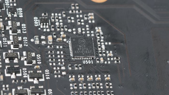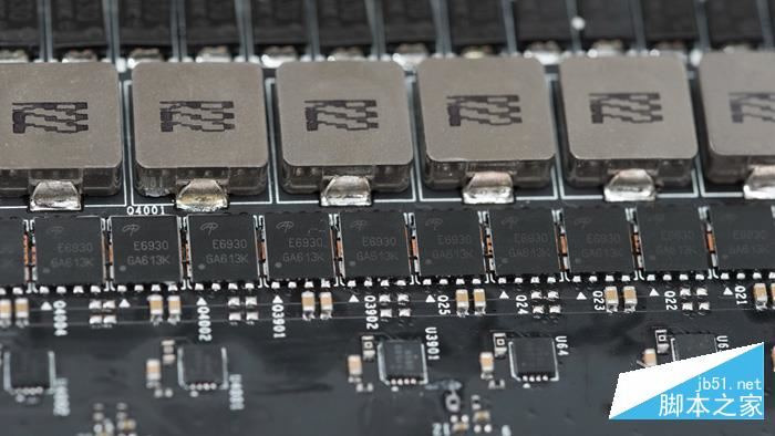 10+2相供电虽然称不上豪华,对比公版的7+2相方案已经有很大改进。为了压制pcb高度,采用了超薄贴片式电感和铝聚合物电容,还有少量的钽电容。