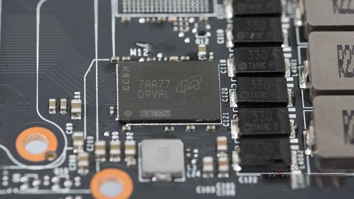 gddr5x显存唯独美光一家,型号同样是d9vrl,带宽为11gbps。