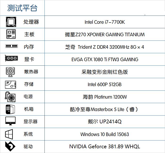 测试平台系统为微软windows 10创意者,具体版本是microsoft windows 10™ build 15063。显卡驱动方面,为nvidia geforce 381.93 whql。
