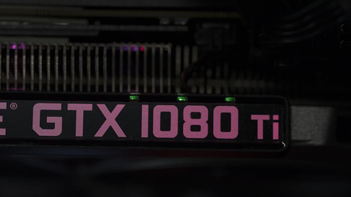 在icx散热器上有gpm三区温度指示灯,指示灯的颜色可以在evga precision xoc软件上更改,默认是59℃以下蓝色,60-82℃为绿色,83℃以上红色。虽然这样的设计可以让玩家不用进入软件既可以看到温度区间,但是led灯亮度不高,容易被信仰logo灯光芒掩盖,而且设置的位置不太人性化,远不如evga gtx 1080 ftw2显卡上的icx散热器。