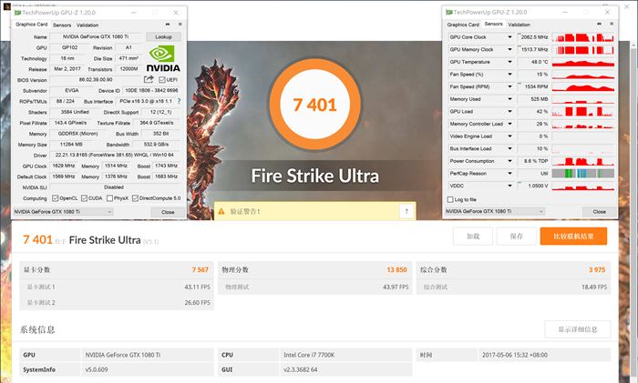 按照我们的步进式超频方法,最终默认频率+60mhz,显存频率+550mhz顺利通过3dmark fire strike ultra测试,最终测试成绩为7567分,比默认提升约5.4%,最终boost频率突破2ghz,达到2062.5mhz。这个成绩在非公版显卡中非常出类拔萃了。