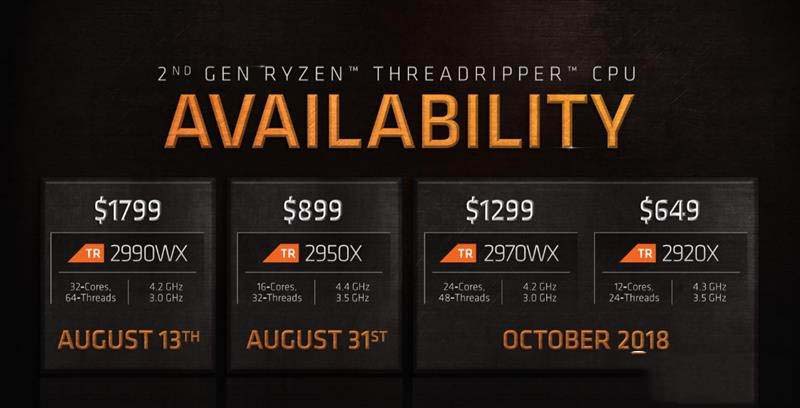 2950x会在本月31日正式发售,2970wx、2920x则会在10月份上市。