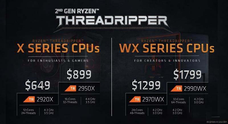 其他三款的国内价格暂未公布,只有北美地区价格。2970wx 1299美元,从规格到价格都暂时没有任何直接竞争对手。