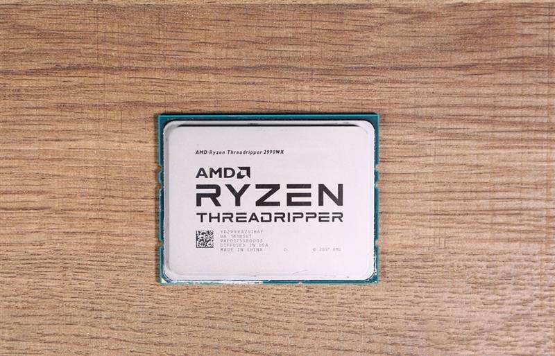 处理器正面。2990wx拥有32核64线程,基础频率3.0ghz,全核频率3.4ghz,最高单核睿频4.2ghz