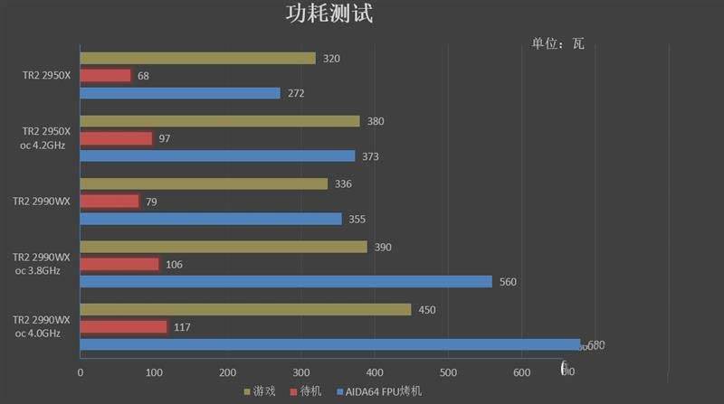 这主要时因为测试平台中的cpu和显卡很难同时满载。目前的游戏最高支持到8核,所以在运行游戏测试时,2990wx最少都有24颗核心处于空载状态下,整机功耗其实和2700x、8700k等主流平台差不多。