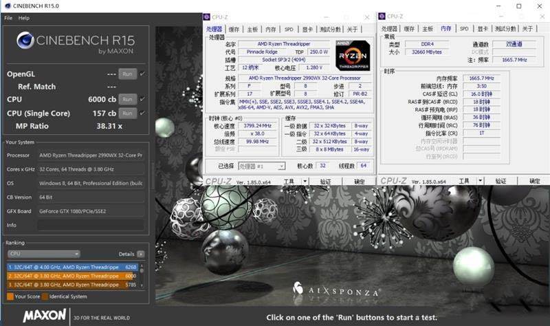 超频到3.8ghz的2950x在cinebench r15跑分时也达到了6000cb,相比4.0ghz时的6283分,损失了不到5%的性能,却能节省30%的功耗。这个频率可以看作是2990wx性能与功耗一个相对的平衡点。