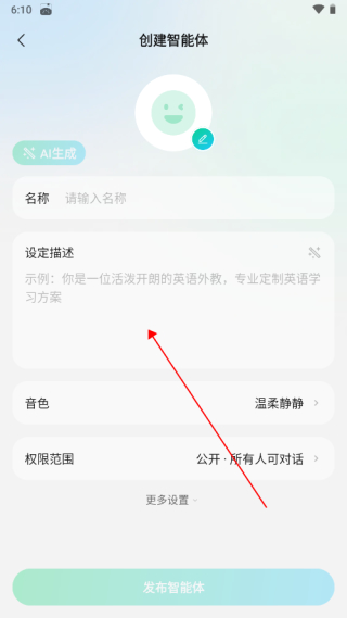 3、输入名称、设定、选择音色等,点击发布即可。