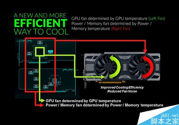 两个风扇不但造型重新设计,还支持异步运行,可分别根据gpu核心温度、供电区域/显存温度运转在不同的速度上,可提高散热效率并降低噪音。