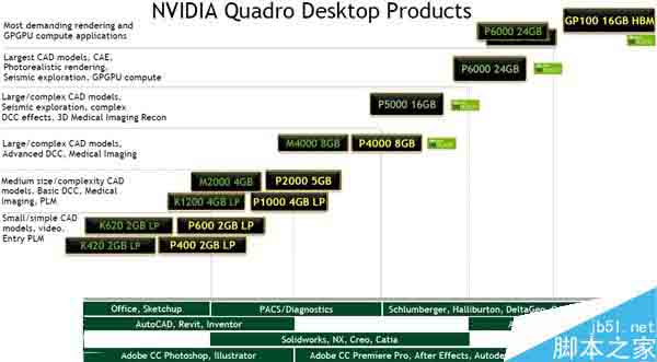 nvidia上周末在solidworks world上宣布六款quadro系列专业卡,分别是gp100, p4000, p2000, p1000, p600和p400。