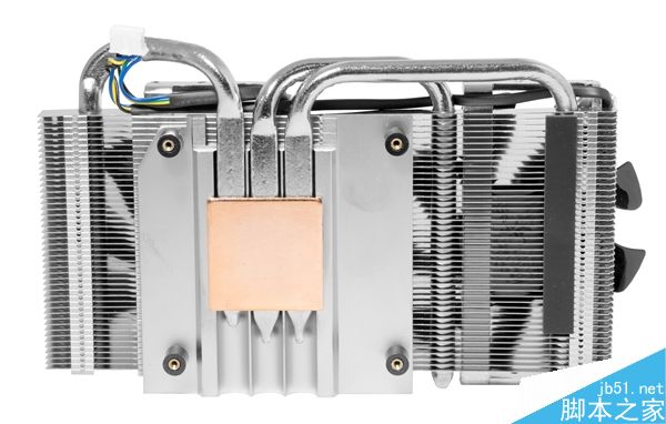 类似公版的4+1相供电和8针供电接口,固态电感,mosfet独立散热片,搭配纯铜底座、三条镀镍热管、大面积铝质鳍片、双风扇、金属护罩的散热器,总长度195毫米,pcb本身也有181毫米,略大于mini-itx主板的170毫米宽度,所以安装的时候需要注意空间分配。
